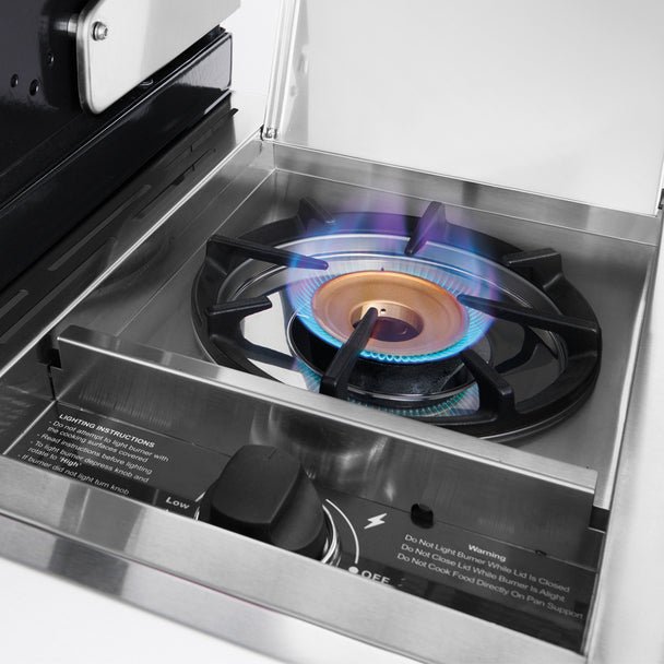 - Cast iron cook tops with a versatile grill and griddle option